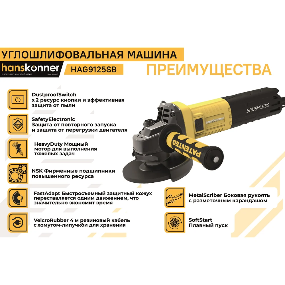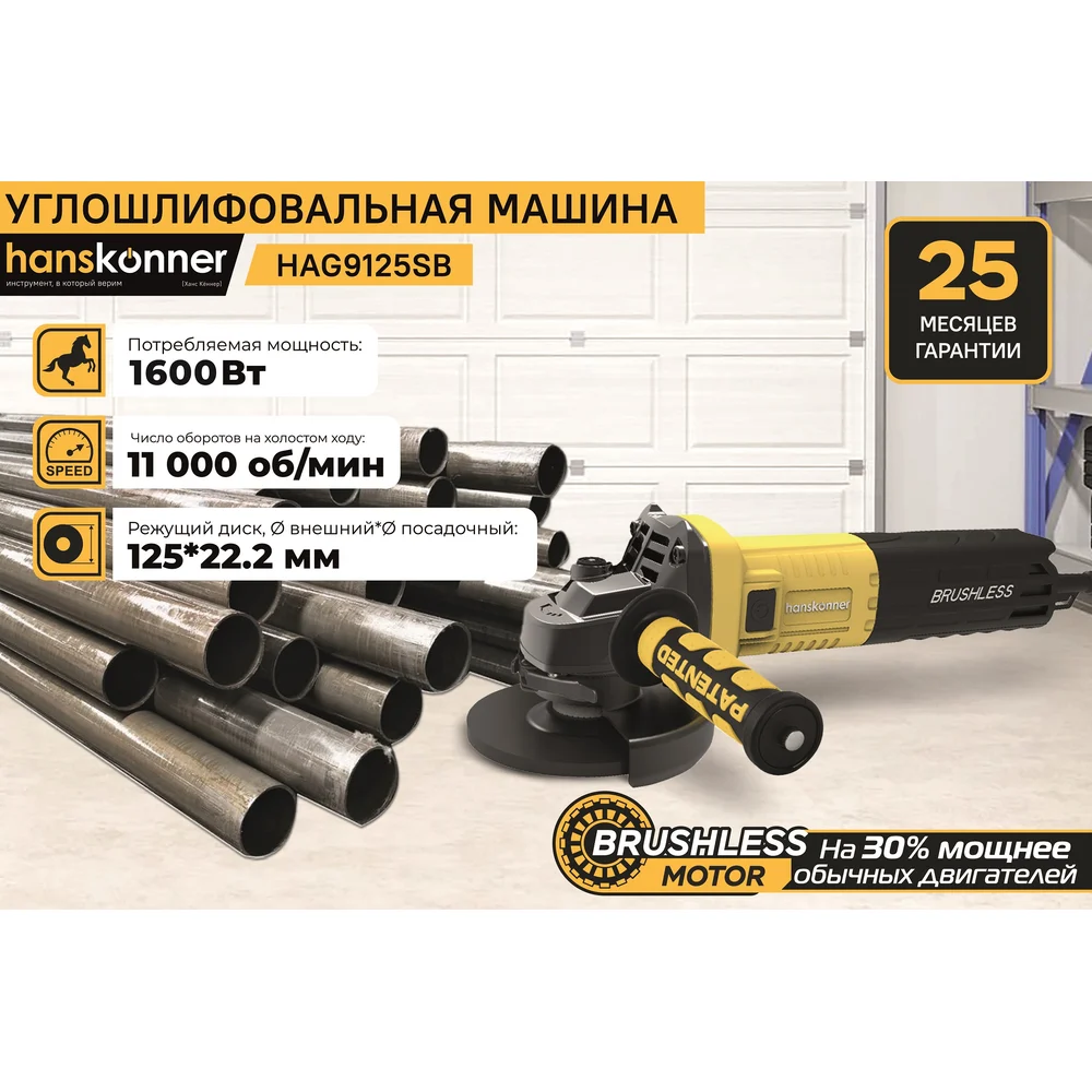 Купить Болгарка Hanskonner УШМ HAG9125SB по лучшей цене с доставкой - интернет магазин №1 в России