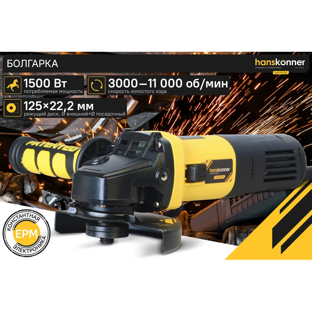Купить Болгарка (УШМ) Hanskonner HAG15125E по лучшей цене с доставкой - интернет магазин №1 в России