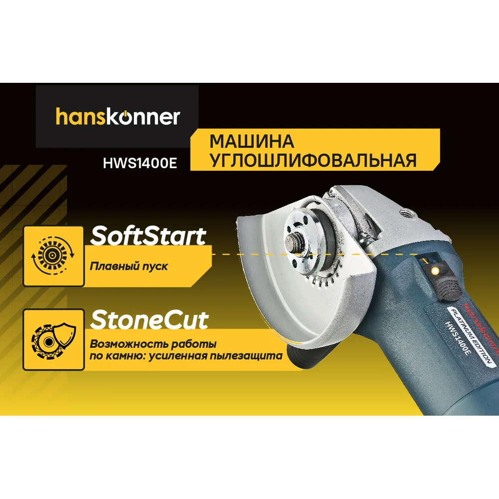 Купить Болгарка (УШМ) Hanskonner PLATINUM HWS1400E по лучшей цене с доставкой - интернет магазин №1 в России