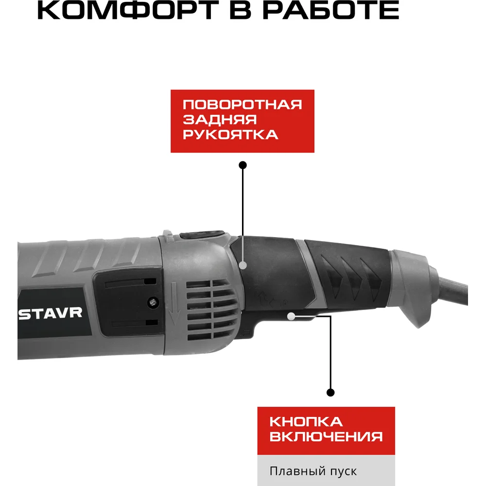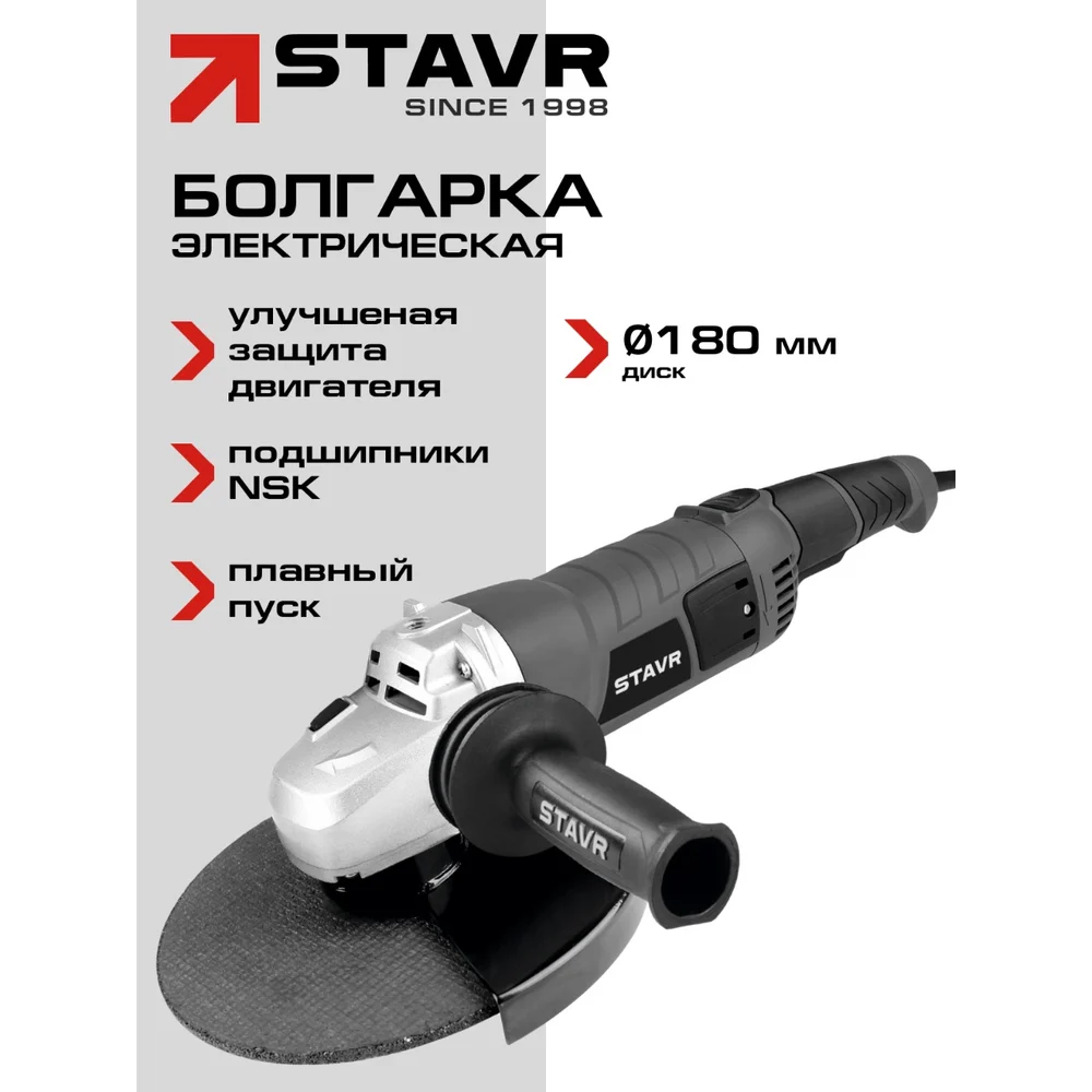 Купить Машина углошлифовая СТАВР 180мм, 2000Вт, Stavr SAG 20-180RS, 8000об/мин, кабель 3м (ключ, бок.рукоятка, кожух) 9030700466 по лучшей цене с доставкой - интернет магазин №1 в России
