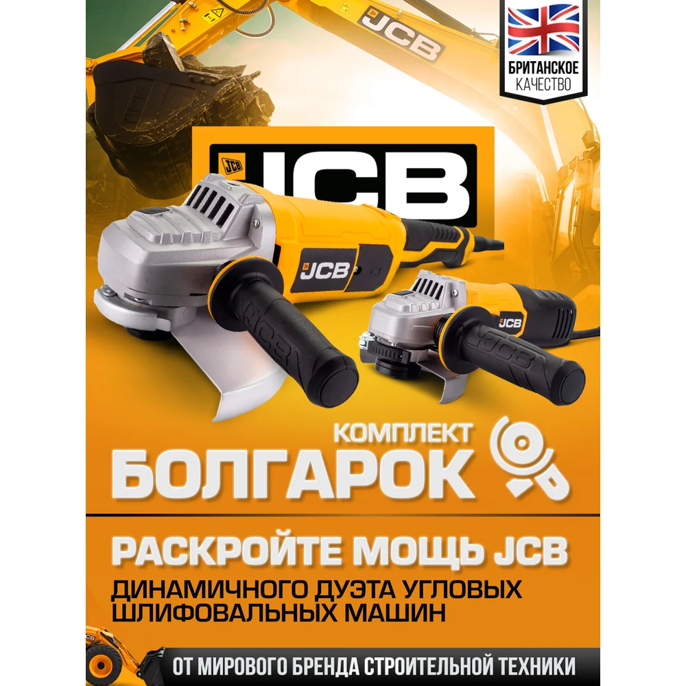 Купить Набор машин углошлифовальных JCB электрических -AG115-E (600Вт,12 000 об/мин, диаметр диска 115мм) и AG230-E (2000Вт, 6500 об/мин, диаметр диска 230мм) JCB-AGTPK-E(57263) по лучшей цене с доставкой - интернет магазин №1 в России