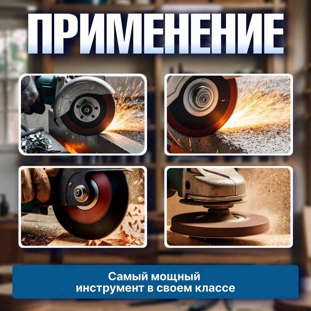 Комплектация Кожух защитный - 1 шт.,; Прижимная шайба - 1 шт.,; Посадочная шайба - 1 шт.,; Дополнительная рукоятка - 1 шт.,; Ключ для замены диска - 1 шт