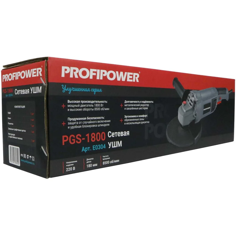 Купить Сетевая УШМ (болгарка) Profipower PGS-1800 (1800Вт, 180мм, 8500об/мин, в коробке) E0304 по лучшей цене с доставкой - интернет магазин №1 в России