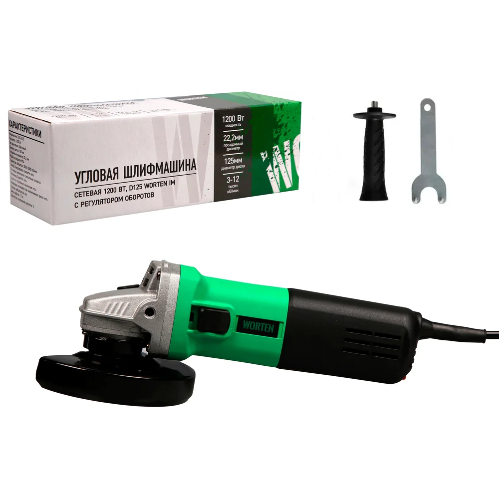 Купить Шлифмашина угловая WORTEN сетевая 1200 Вт, D125 КА-90000712 по лучшей цене с доставкой - интернет магазин №1 в России