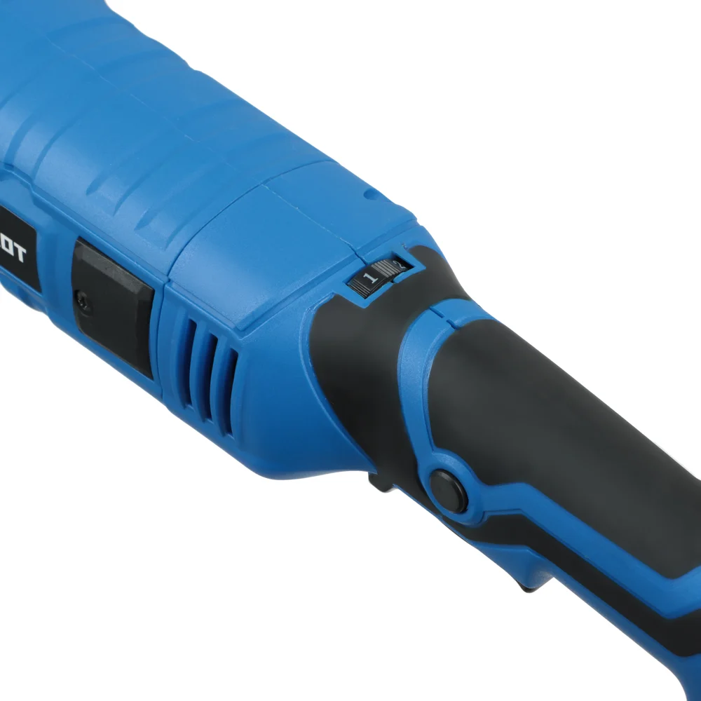 Комплектация Шлифовальная угловая машина; Комплект щеток; Ключ для замены диска; Защитный кожух; Дополнительная рукоятка; Инструкция; Коробка