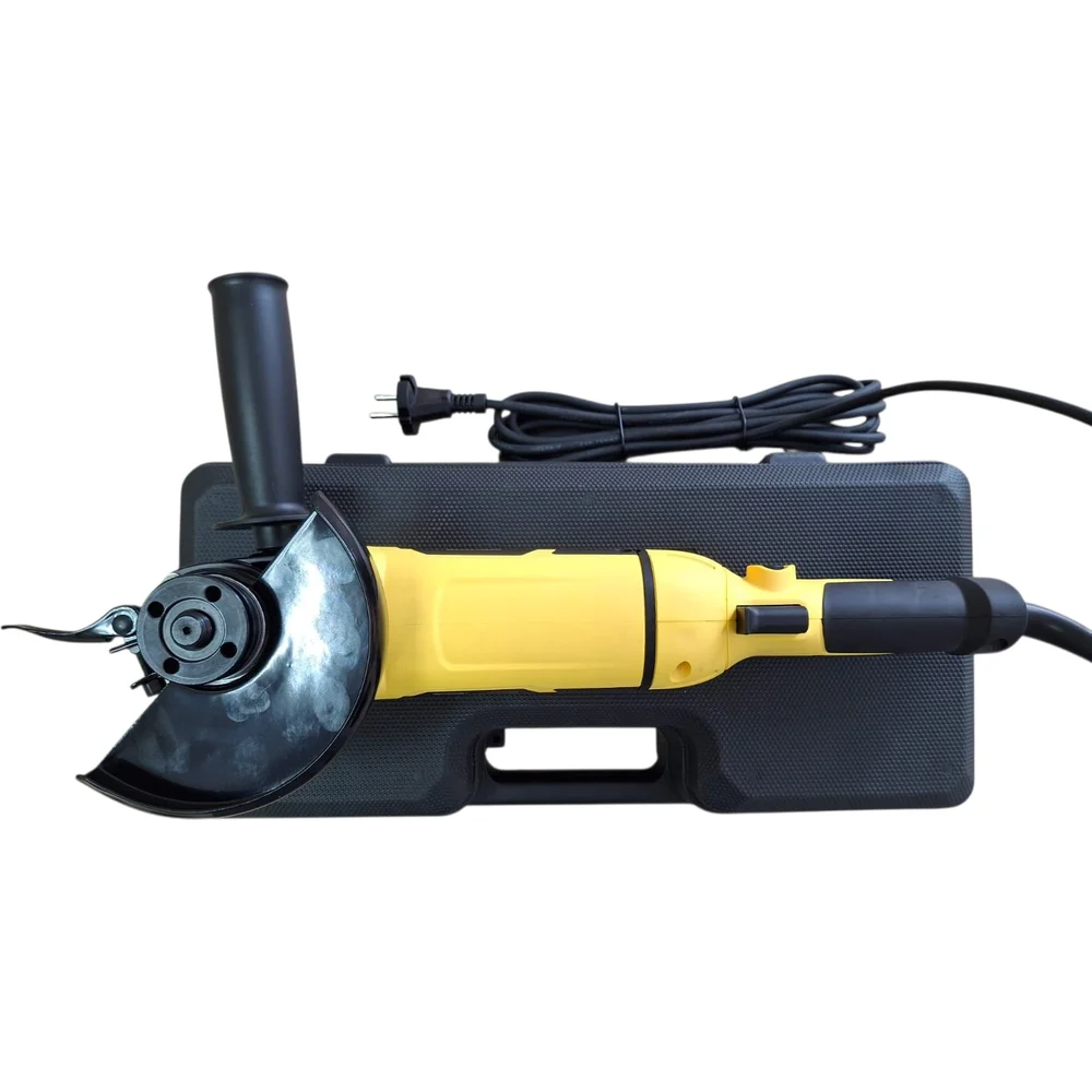 Комплектация Углошлифовальная машина; Боковая ручка; Защитный кожух; Гаечный ключ; Шестигранный ключ; Комплект угольных щеток; Кейс