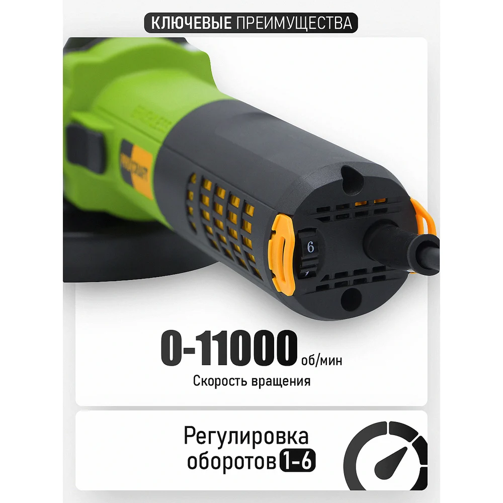 Углошлифовальная машина бесщеточная PROCRAFT 850Вт, 125мм, 0-11000 об/мин PW1550