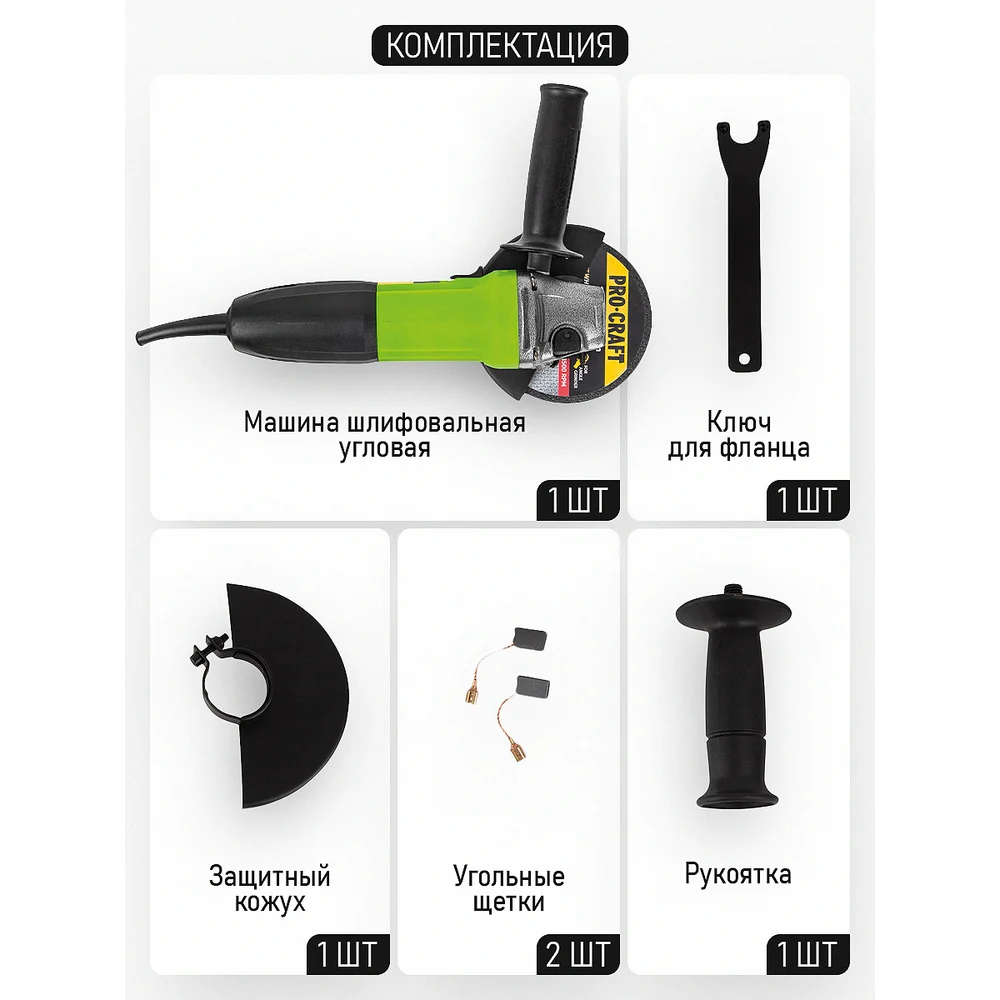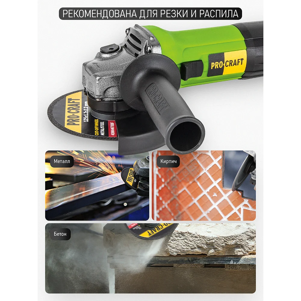 Купить Углошлифовальная машина болгарка PROCRAFT УШМ сетевая, 125 мм PW1100 по лучшей цене с доставкой - интернет магазин №1 в России