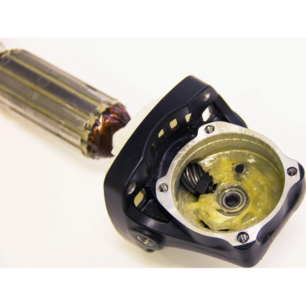 Комплектация Углошлифовальная машина; Боковая ручка; Защитный кожух; Гаечный ключ; Шестигранный ключ; Комплект угольных щеток; Коробка