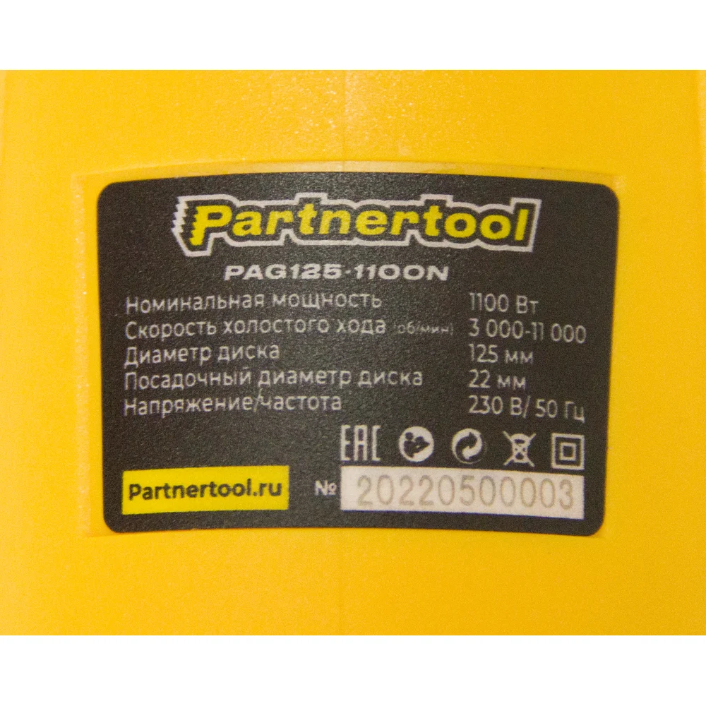 Купить Углошлифовальная машина PARTNERTOOL PAG125-1100N по лучшей цене с доставкой - интернет магазин №1 в России