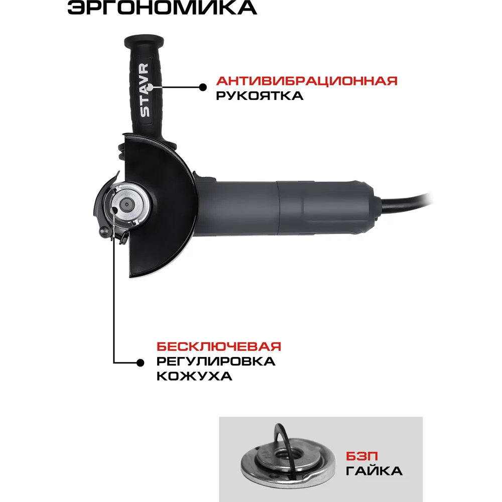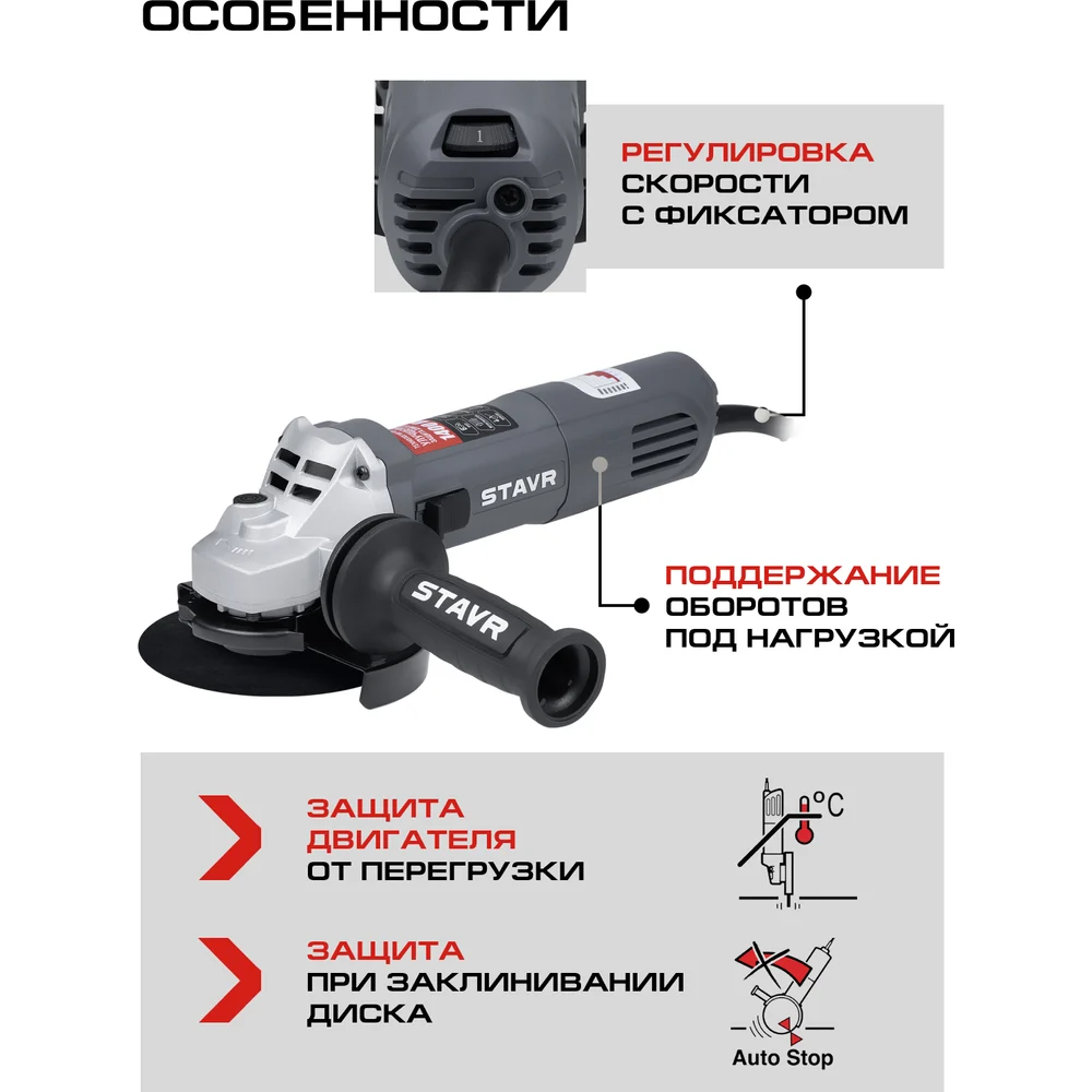 Купить Углошлифовальная машина Ставр 125 мм, 1400 Вт со стабилизацией и регулировкой оборотов STAVR SAG 14-125VSP, 9030700416 по лучшей цене с доставкой - интернет магазин №1 в России