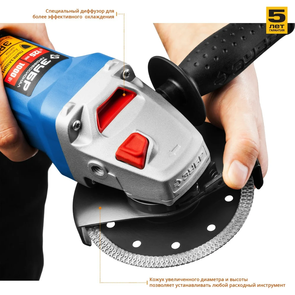 Купить Углошлифовальная машина Зубр ПРОФЕССИОНАЛ УШМ-П125-1000 по лучшей цене с доставкой - интернет магазин №1 в России