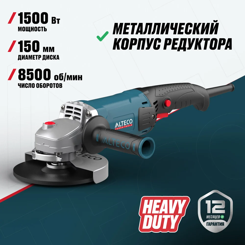 Купить Угловая шлифмашина ALTECO agh 1500-150 heavy duty 61280 по лучшей цене с доставкой - интернет магазин №1 в России