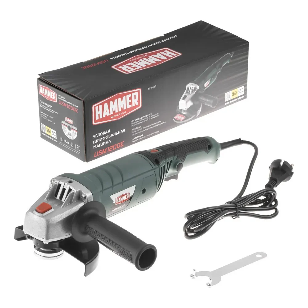 Купить Угловая шлифмашина Hammer Flex 1200 Вт, 3000-11000 об/мин, 125 мм USM1200E по лучшей цене с доставкой - интернет магазин №1 в России