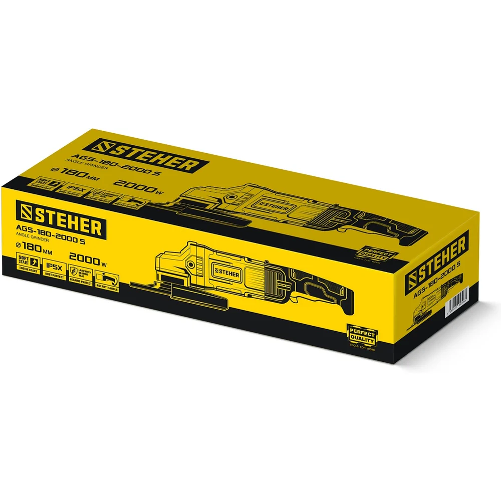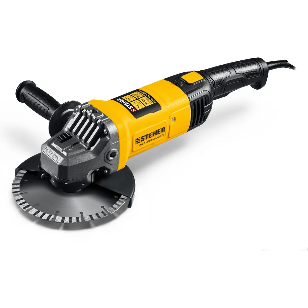 Купить Угловая шлифмашина STEHER d 180 мм, 2000 Вт AGS-180-2000 S по лучшей цене с доставкой - интернет магазин №1 в России