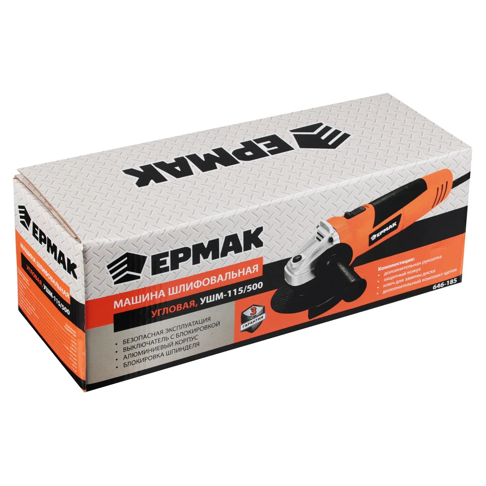 Купить Угловая шлифовальная машина ЕРМАК УШМ-115/500 646-185 по лучшей цене с доставкой - интернет магазин №1 в России