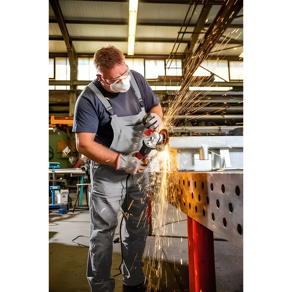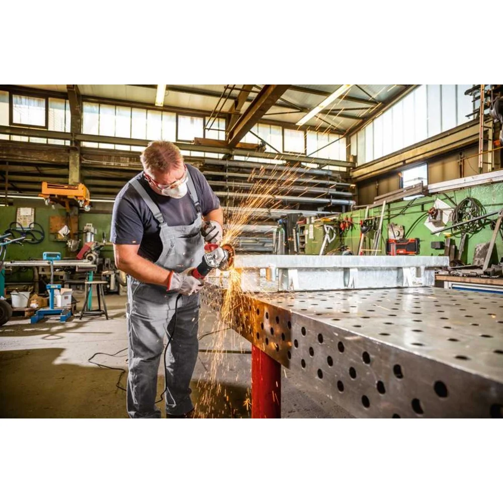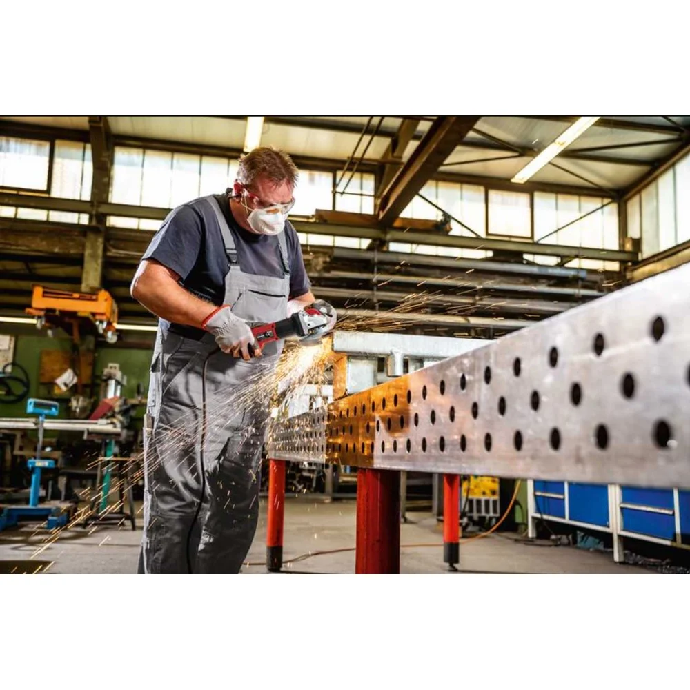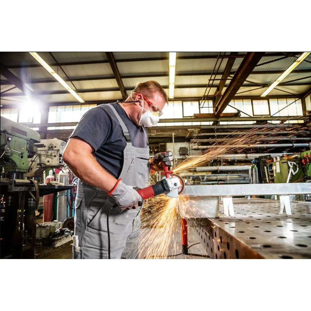 Комплектация Шлифмашина; Дополнительная рукоять (437921),; Защитный кожух, шлифование Ø 125 (436860); Зажимной фланец (335282); Зажимная гайка M 14 (100080); Торцевой штифтовый гаечный ключ (100110); Инструкция; Коробка