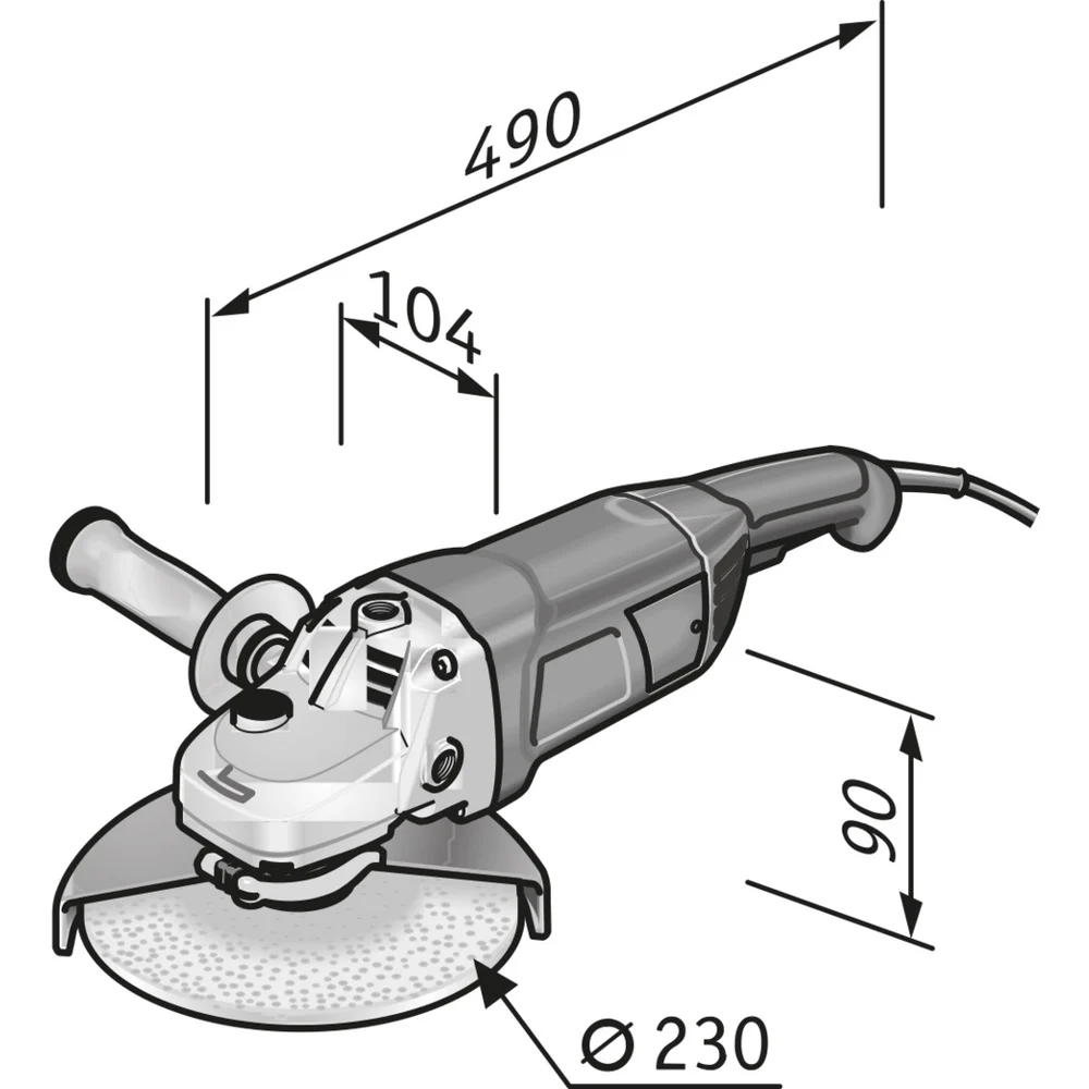 Комплектация Угловая шлифовальная машина; Защитный кожух, шлифование Ø 230 (338729); Ручка SoftVib (325384); Торцевой штифтовый гаечный ключ BL 5 (100110); Зажимной фланец (335282); Зажимная гайка M 14 (100080); Упаковка