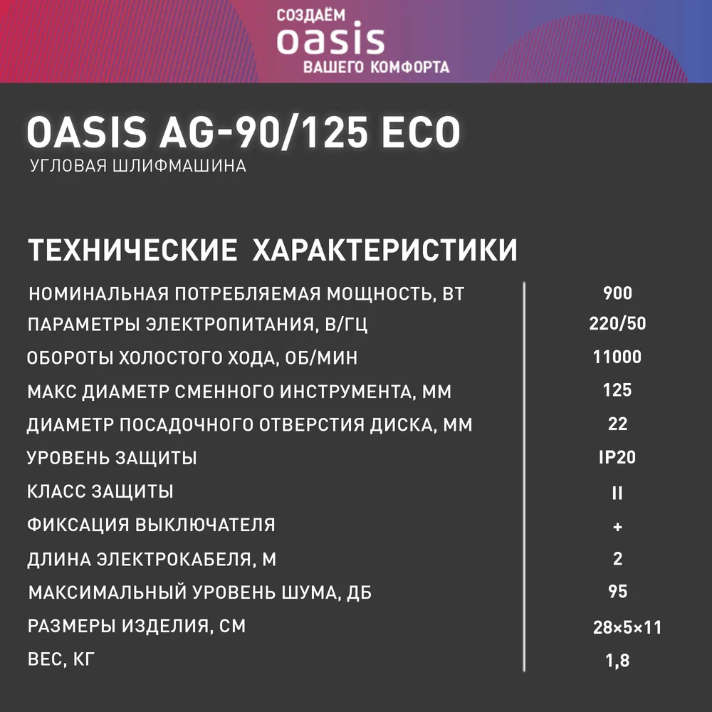 Купить Угловая шлифовальная машина OASIS AG-90/125 Eco по лучшей цене с доставкой - интернет магазин №1 в России