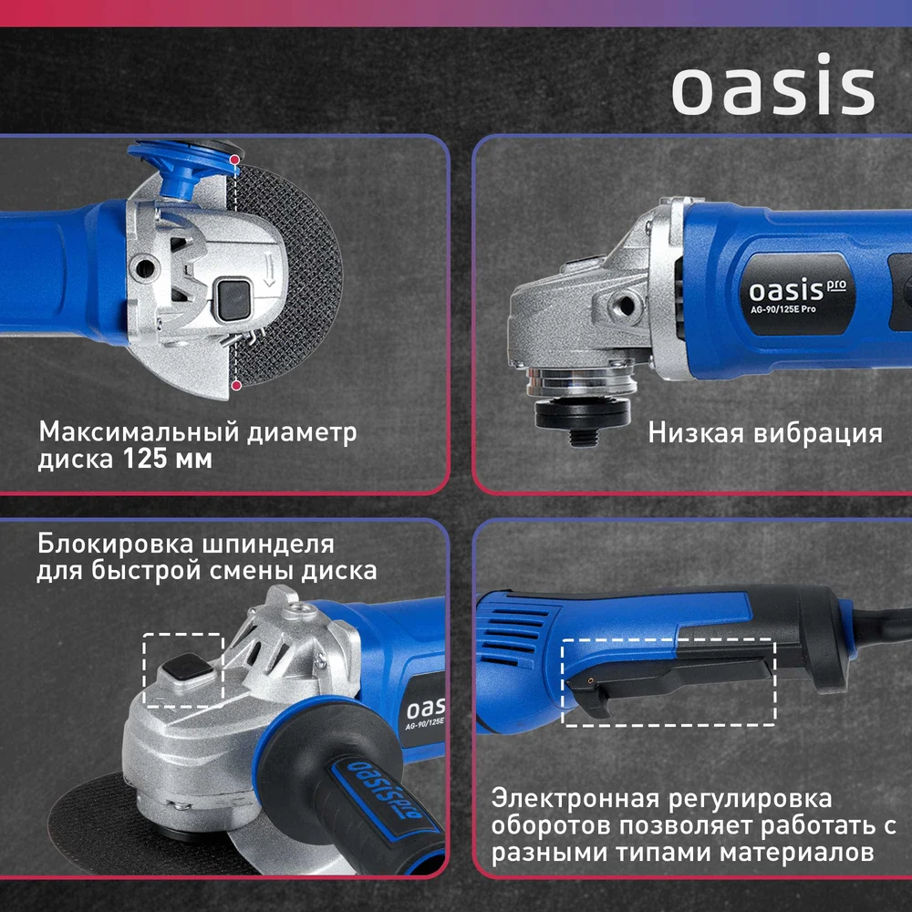 Купить Угловая шлифовальная машина OASIS AG-90/125E Pro по лучшей цене с доставкой - интернет магазин №1 в России