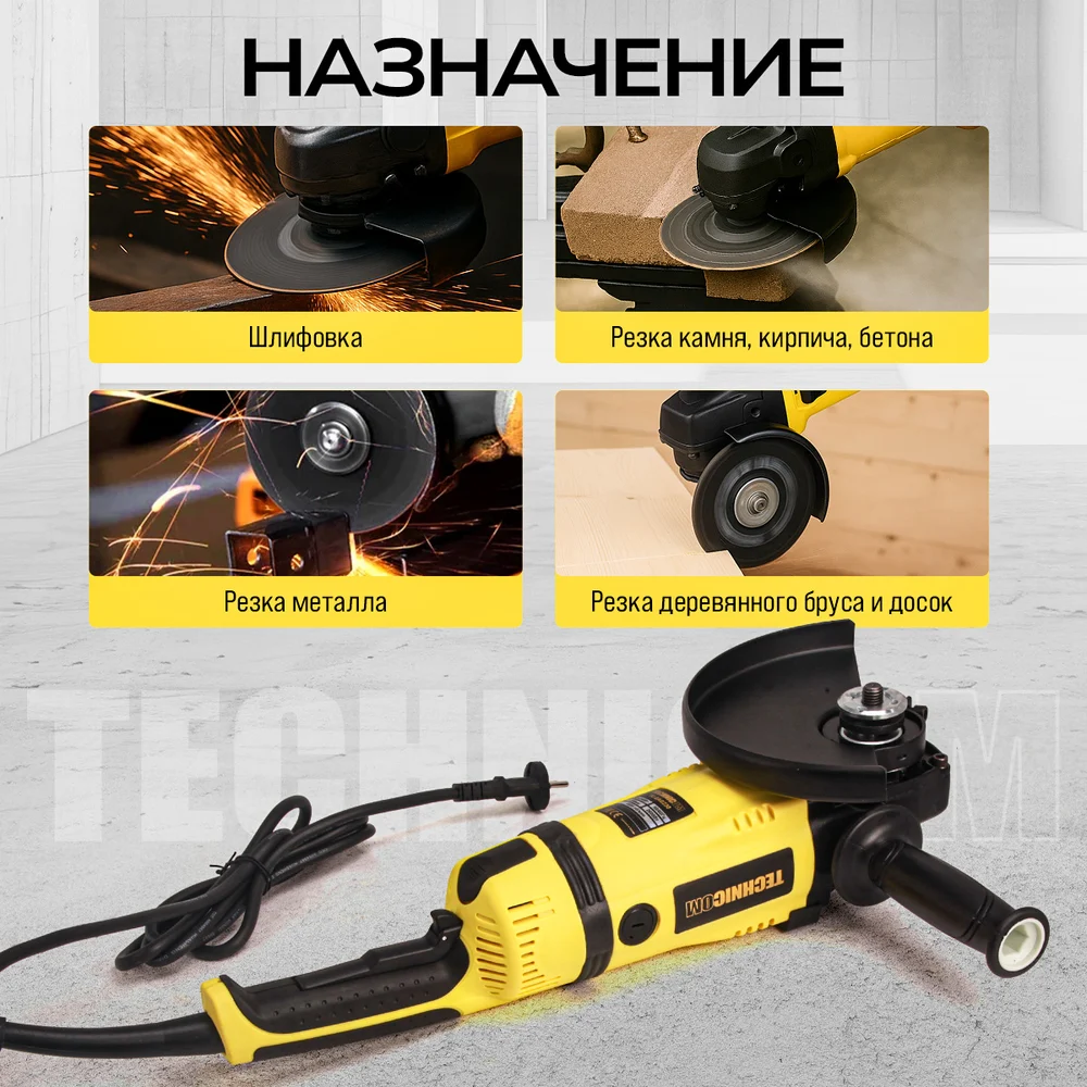 Купить Угловая шлифовальная машина TECHNICOM 2600Вт, 220В, 6600 об/мин, диск 230мм TC-EAG230 по лучшей цене с доставкой - интернет магазин №1 в России