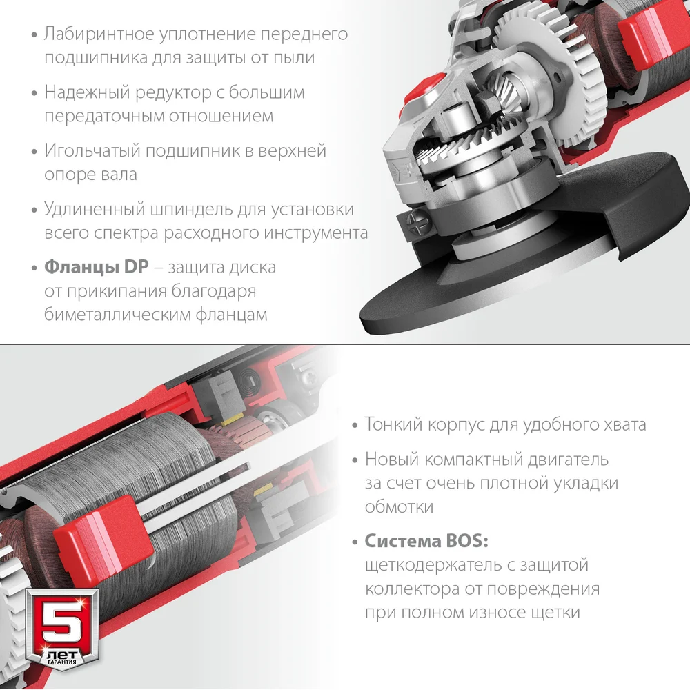 Комплектация Углошлифовальная машина; Кожух защитный; Рукоятка дополнительная; Ключ специальный; Руководство по эксплуатации