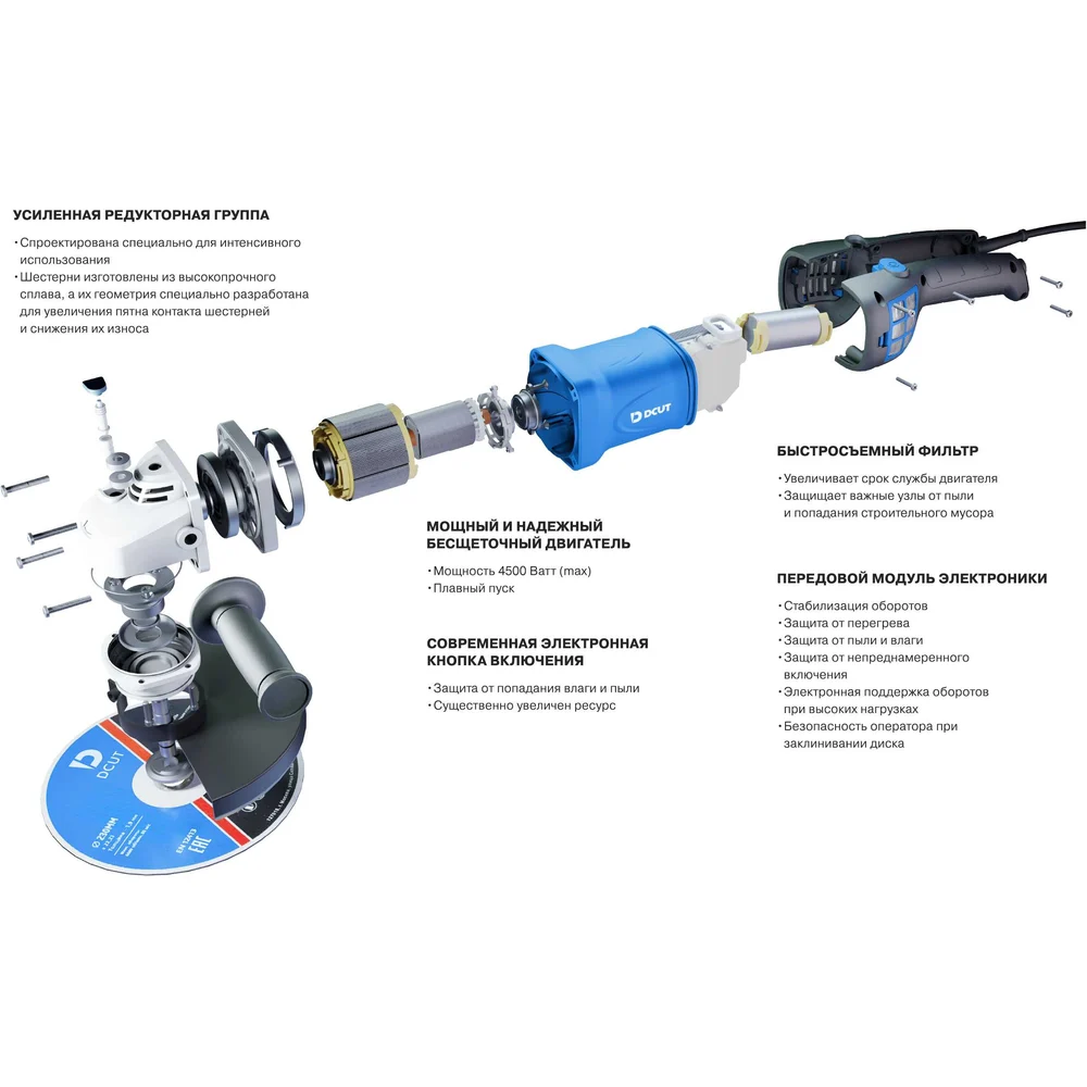 Купить УШМ бесщёточная DCUT 230мм 3200Вт (max4500) 6600 об/мин DBG23045C-SP1 по лучшей цене с доставкой - интернет магазин №1 в России