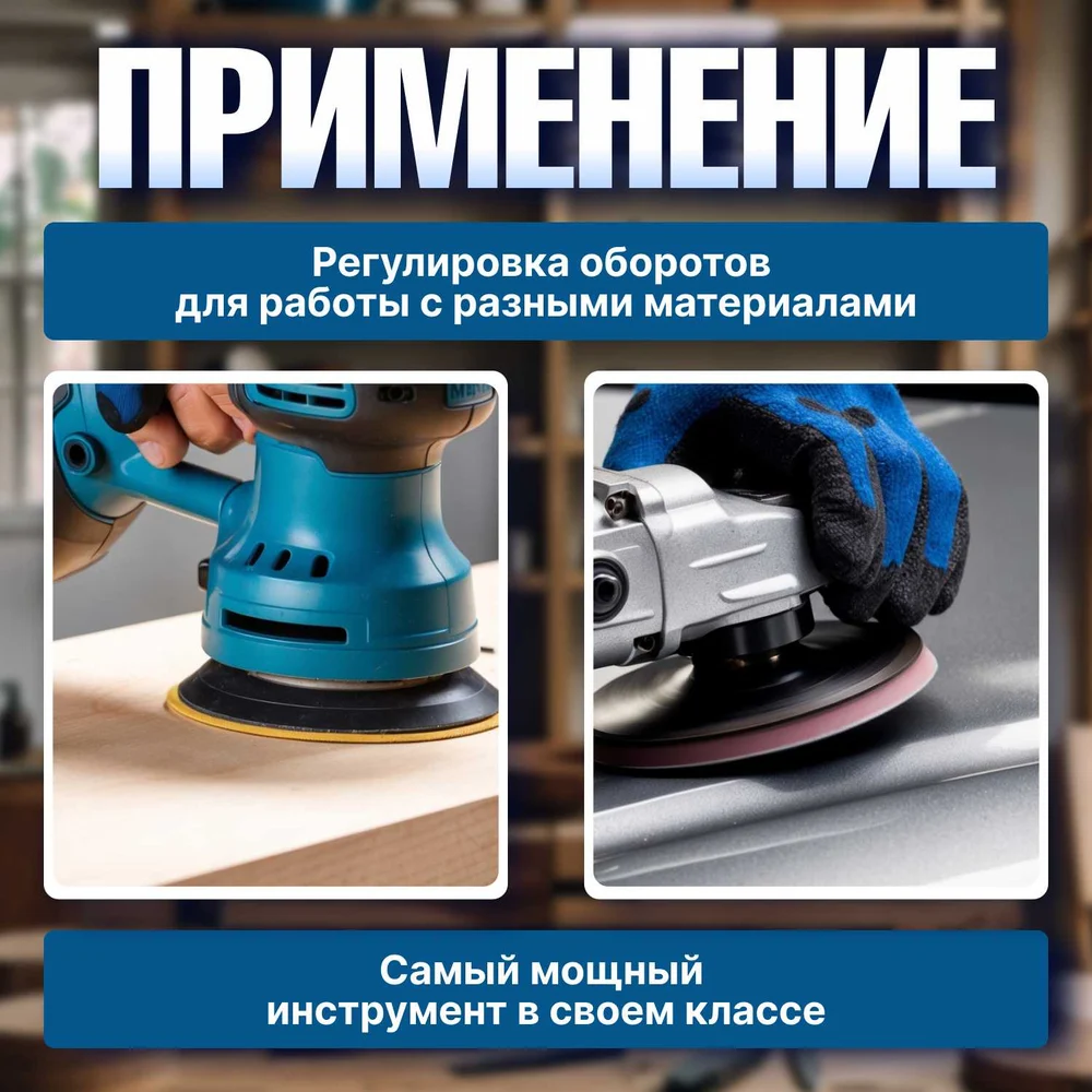 Комплектация Эксцентриковая шлифмашина; Пылесборный мешок; Шлифовальный лист 125 мм; Инструкция по эксплуатации; Комплект угольных щеток; Упаковка