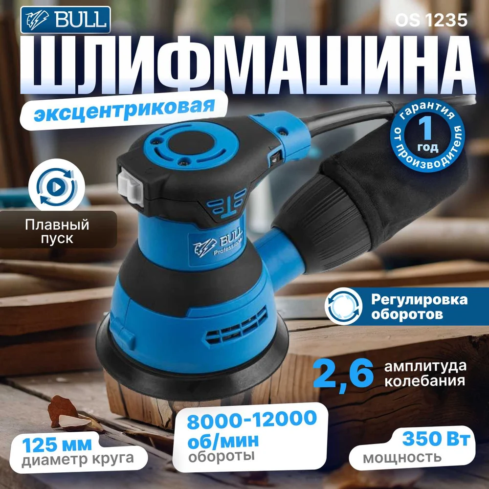 Купить Эксцентриковая орбитальная шлифмашина BULL OS 1235 0327338 по лучшей цене с доставкой - интернет магазин №1 в России