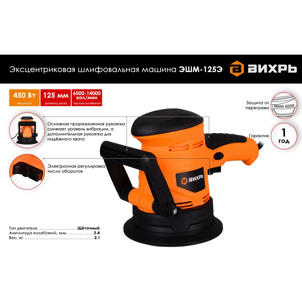 Купить Эксцентриковая шлифовальная машина Вихрь ЭШМ-125Э 72/6/5 по лучшей цене с доставкой - интернет магазин №1 в России