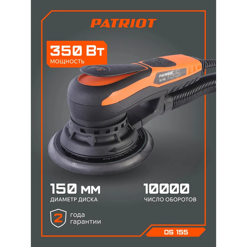 Купить Машина эксцентриковая шлифовальная Patriot OS 155, 350Вт, 150мм, 4000-10000об/мин 110301255 по лучшей цене с доставкой - интернет магазин №1 в России