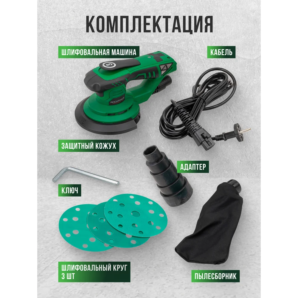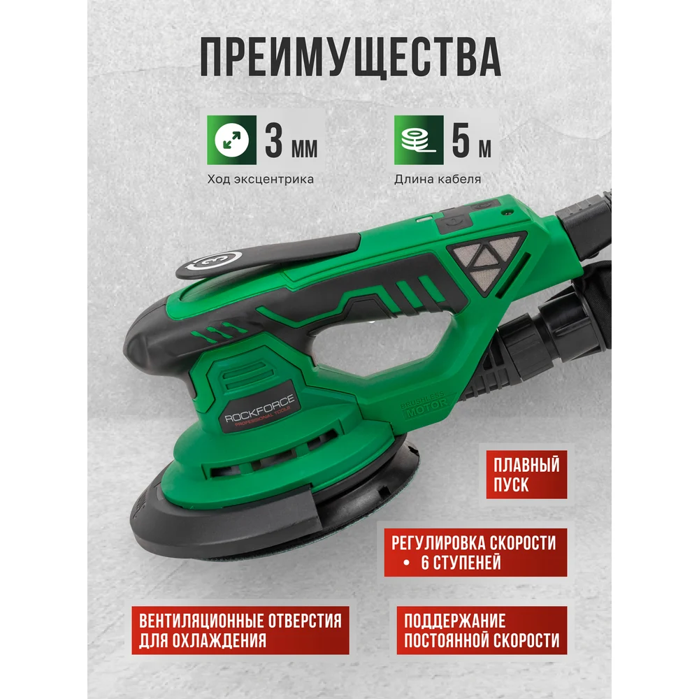 Купить Машина шлифовальная Rockforce орбитальная с бесщеточным двигателем 400Вт RF-S1A-DH22-125T(62654) по лучшей цене с доставкой - интернет магазин №1 в России