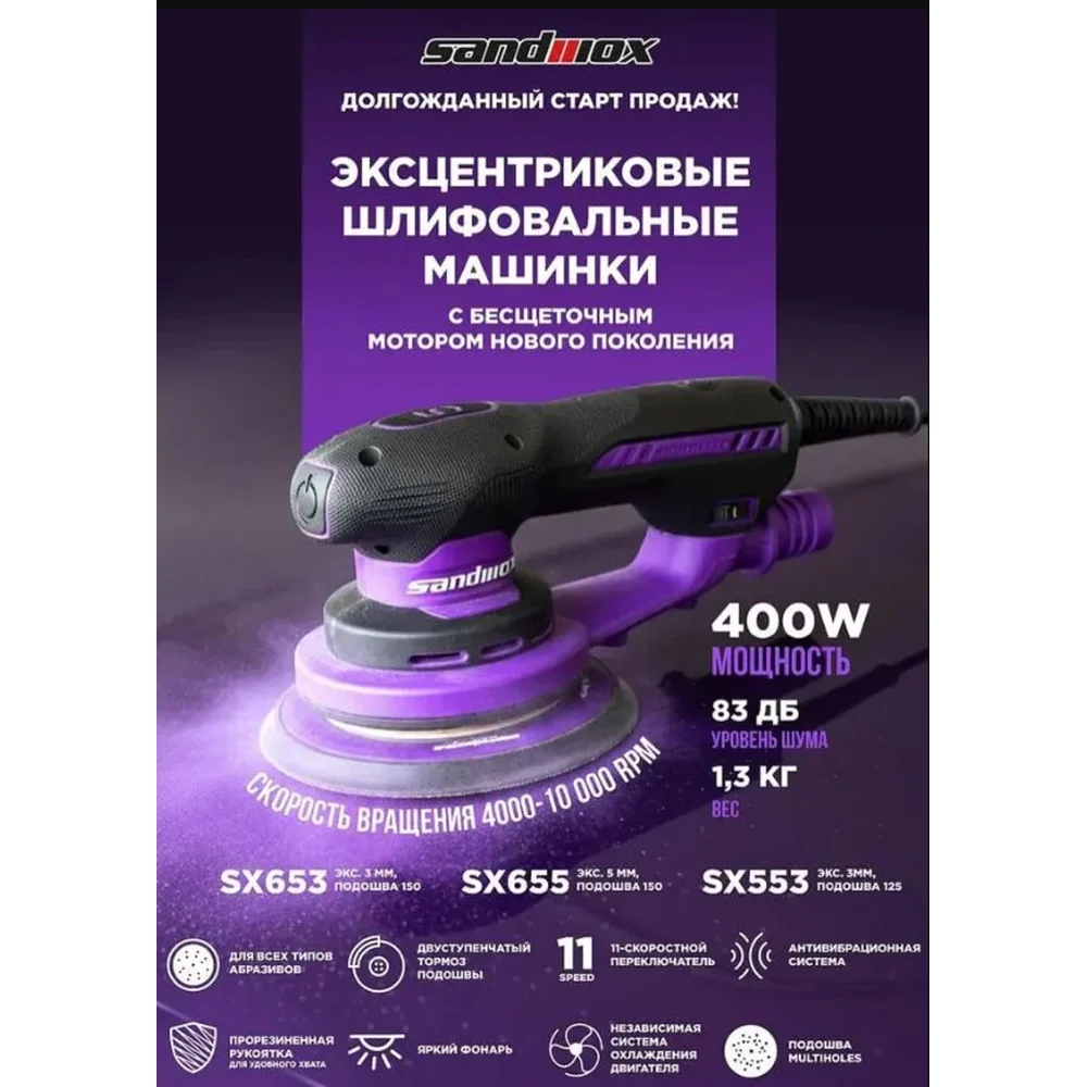 Купить Машинка шлифовальная эксцентриковая SANDWOX SX653 150мм, орбита 3мм SX653 150/3 EC по лучшей цене с доставкой - интернет магазин №1 в России