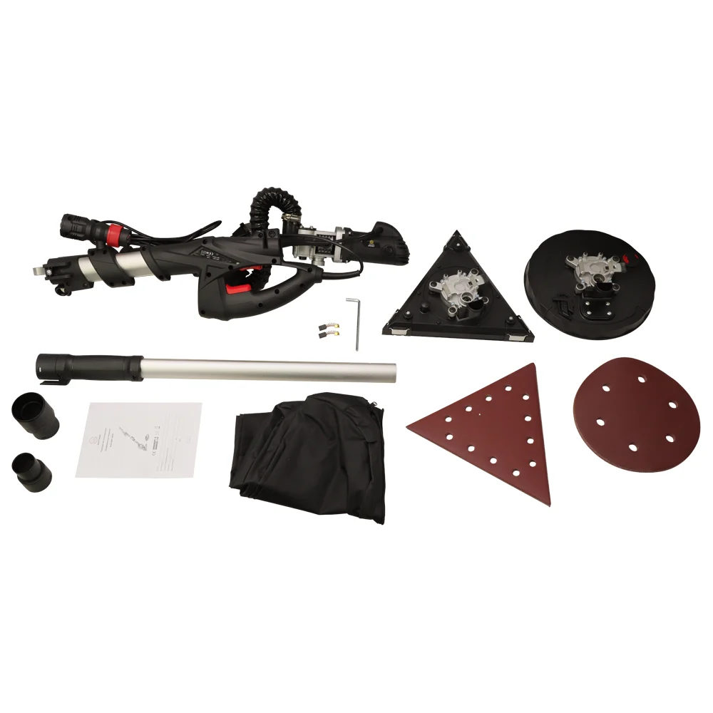 Комплектация Шлиф машина; Подушка круглая 215 мм; Подушка треугольная; Шланг-пылеотвод; Инструкция; Сумка-баул с ручками