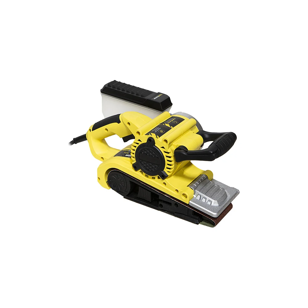 Комплектация Ленточная машина; Пылесборник; Шлифовальная лента (установлена); Запасной ремень; Шлифовальная рамка; Струбцины - 2шт; Адаптер для подключения пылесоса; Дополнительные угольные щетки - 2шт; Инструкция по эксплуатации; Инструкция по безопасности; Коробка