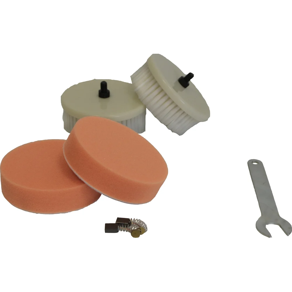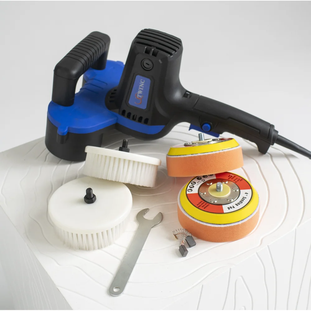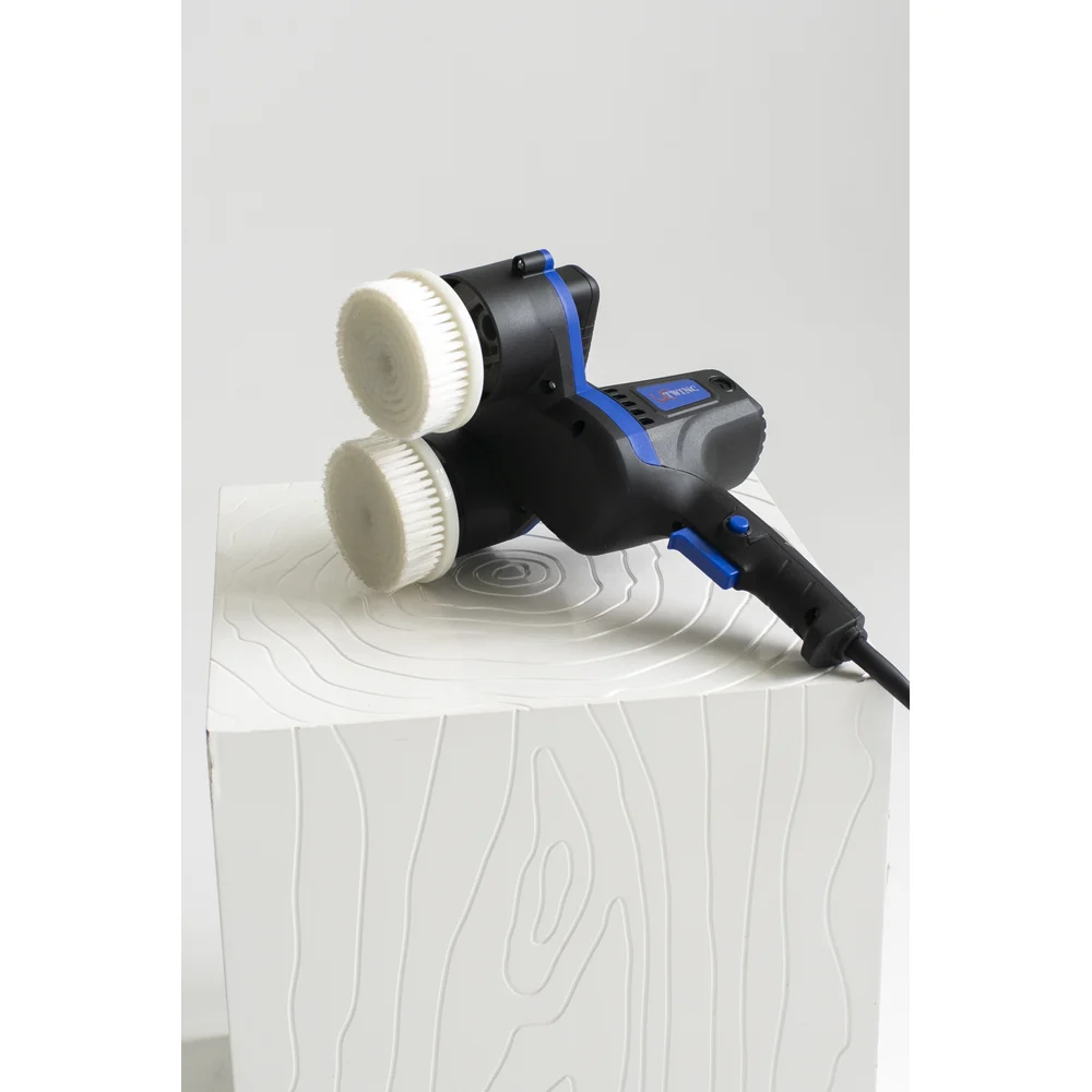 Комплектация Орбитальная машина TWINC с кабелем 3м; Держатели падов - 2шт; Пады поролон - 2шт; Щетки супермягкие с ворсом 0,2 мм- 2шт; Ключ для замены щеток; Угольные щетки -2шт