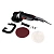Комплектация Полировальная машина; Рукоятка прямая; Рукоятка замкнутая; Опорный круг (180 мм); Насадка из овчины; Лист шлифовальной бумаги; Ключ шестигранный