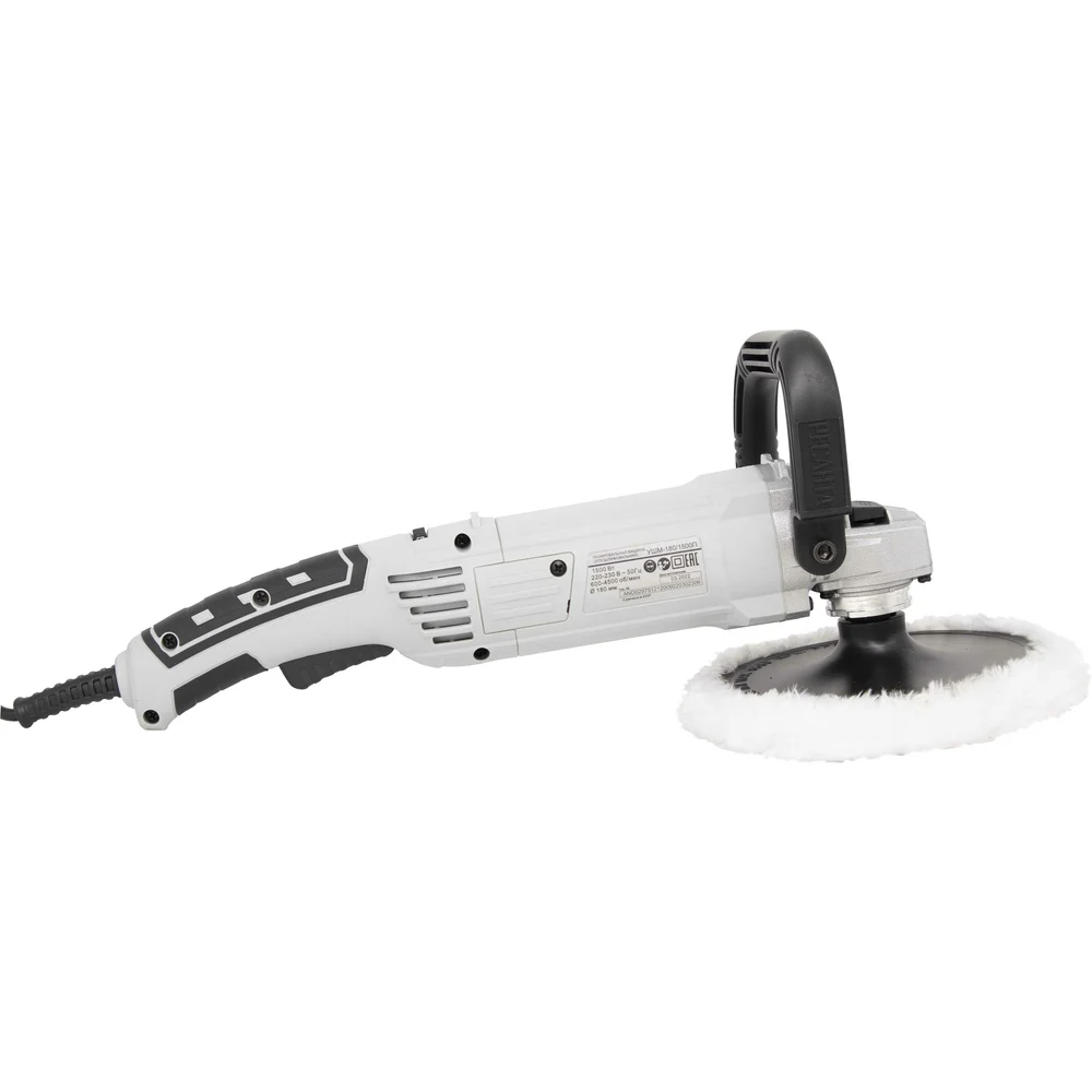 Комплектация Полировальная машина; Дополнительная рукоятка; Тарелка полировальная; Насадка полировальная меховая; Ключ шестигранный; Крепеж для дополнительной рукоятки; Паспорт; Упаковка