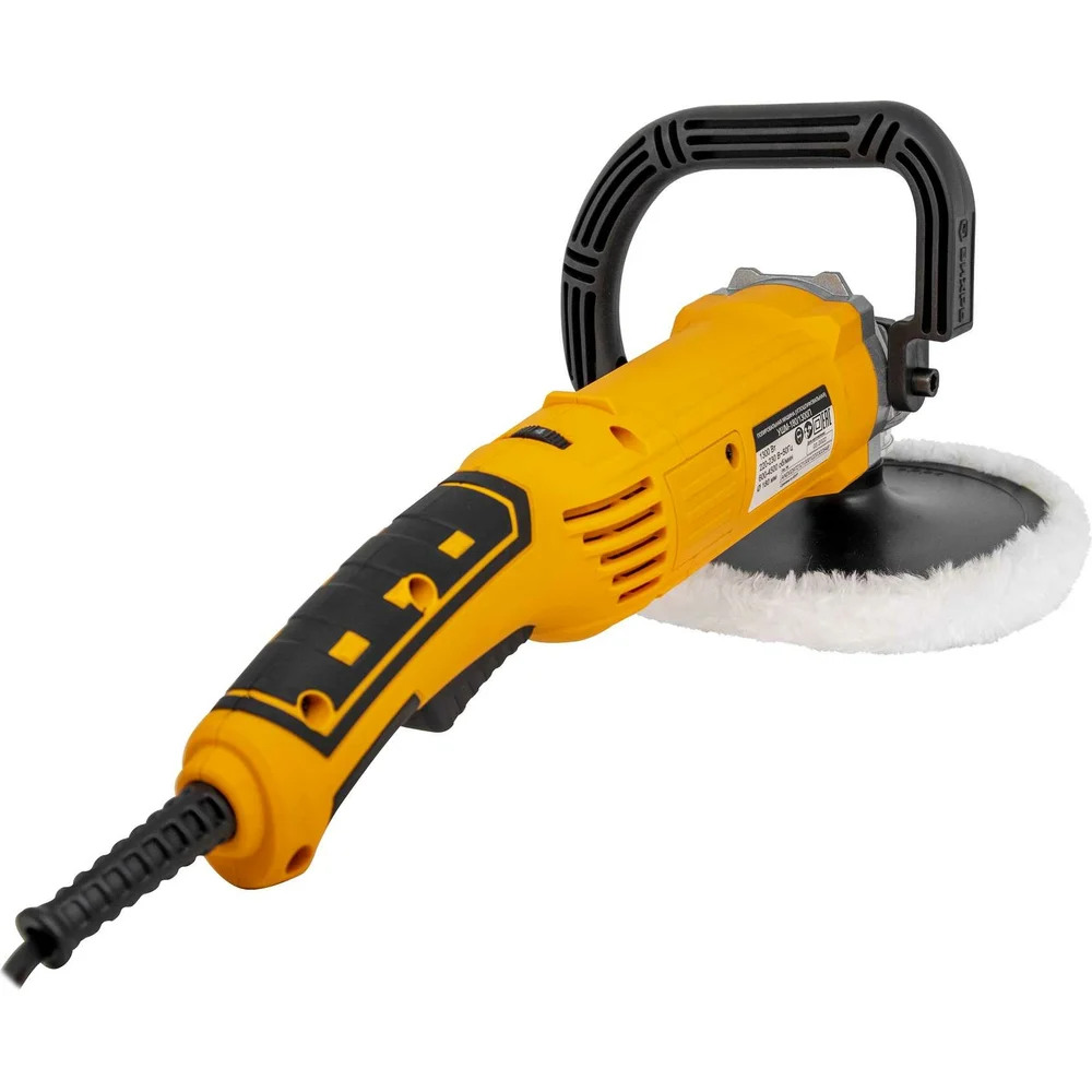 Комплектация Полировальная машина; Дополнительная рукоятка; Тарелка полировальная; Насадка полировальная меховая; Крепёж для дополнительной рукоятки; Ключ шестигранный; Паспорт; Упаковка