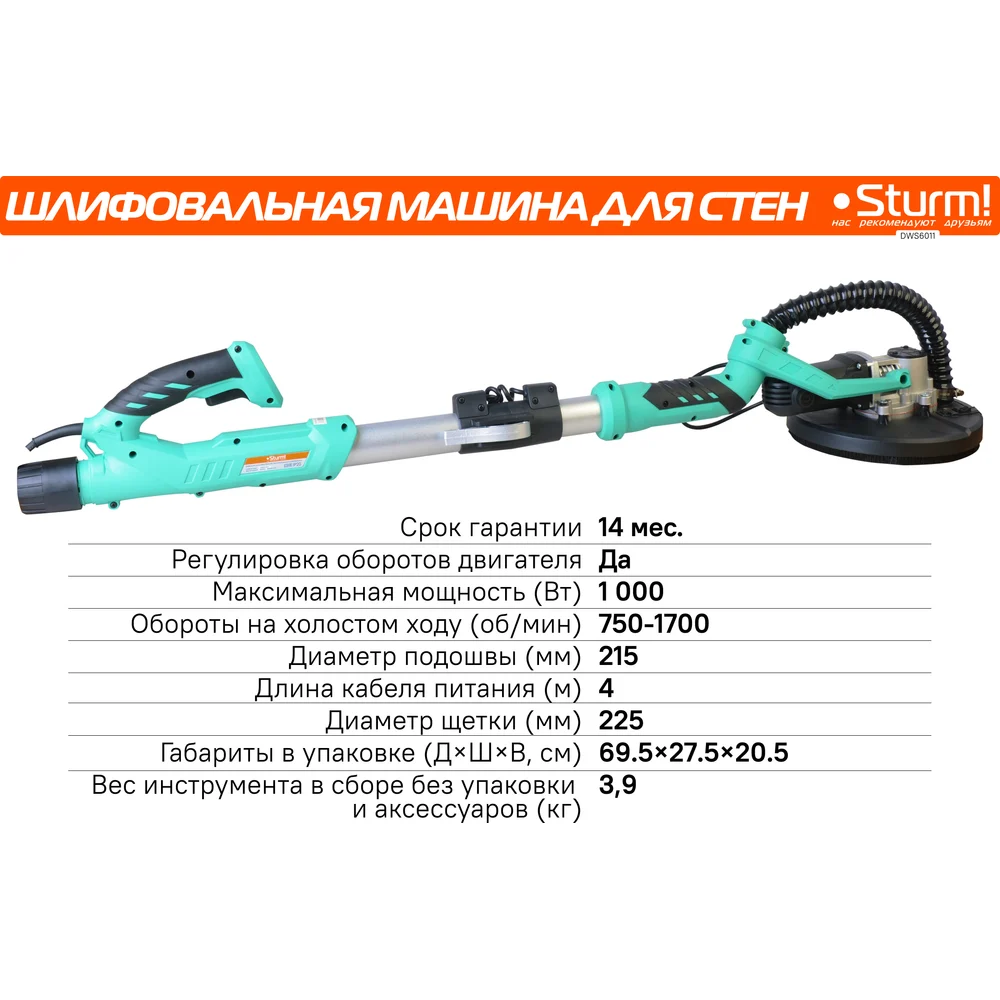 Купить Машина для шлифовки стен Sturm DWS6011 по лучшей цене с доставкой - интернет магазин №1 в России