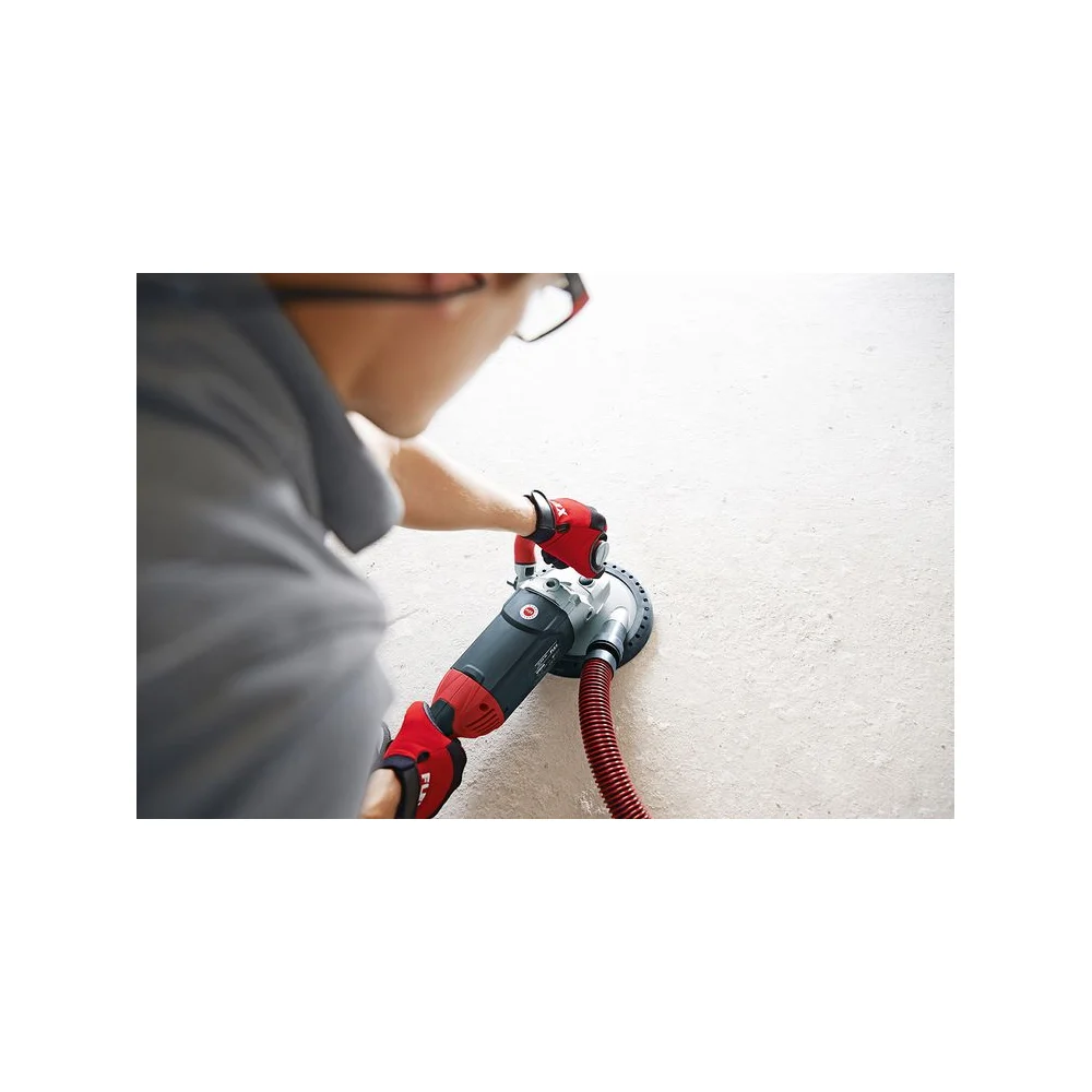 Комплектация Шлифовальная машина; Шлифовальный круг Turbo-Jet (420409); Пылеудаляющий кожух с резиновым всасывающим кольцом (421154); Адаптер для подключения пылеудаляющего устройства (393398); Зажимная гайка M14 (100080); Зажимной фланец SW 17 (191604); Ручка-скоба; Кабельные держатели - 3 шт (302538); Торцовый шестигранный ключ SW 6 (256832); Торцевой штифтовый гаечный ключ (392537); Инструкция; Кейс для переноски (444391)