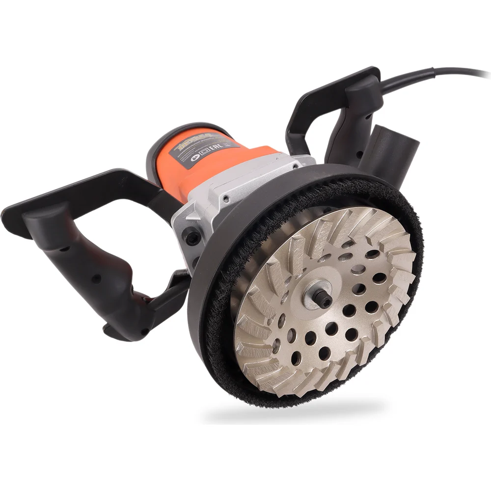 Комплектация Вертикальная шлифовальная машина; Шестигранный ключ; Установочный фланец; Прижимной болт; Прижимная шайба; Ключ для шлифовальной чашки; Гройвер; Коробка