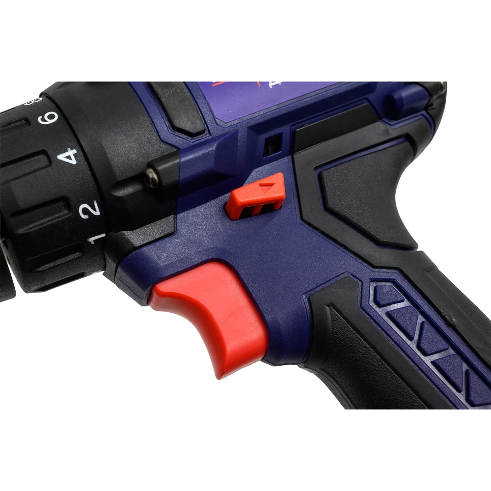 Комплектация Аккумуляторная дрель-шуруповёрт; Аккумуляторная батарея – 2 шт; Зарядное устройство; Руководство по эксплуатации; Гарантийный талон; Кейс