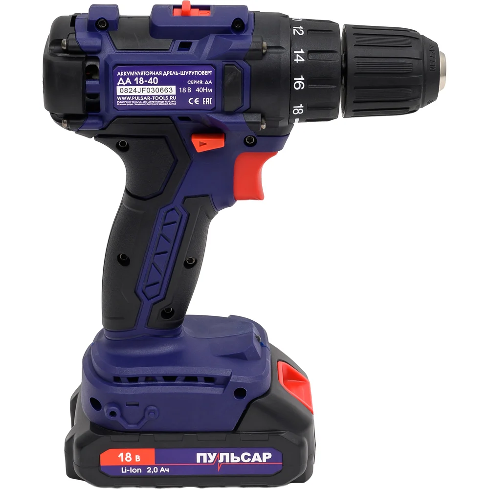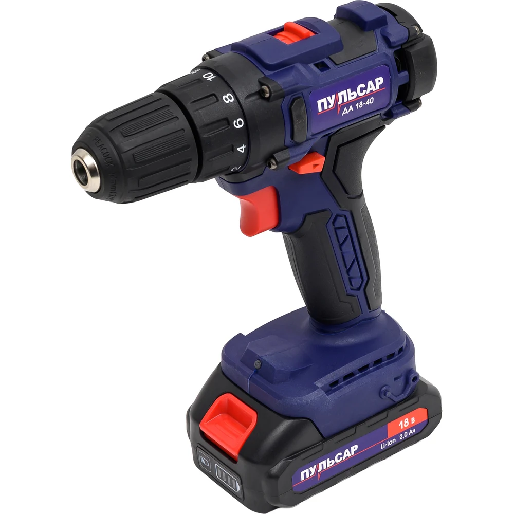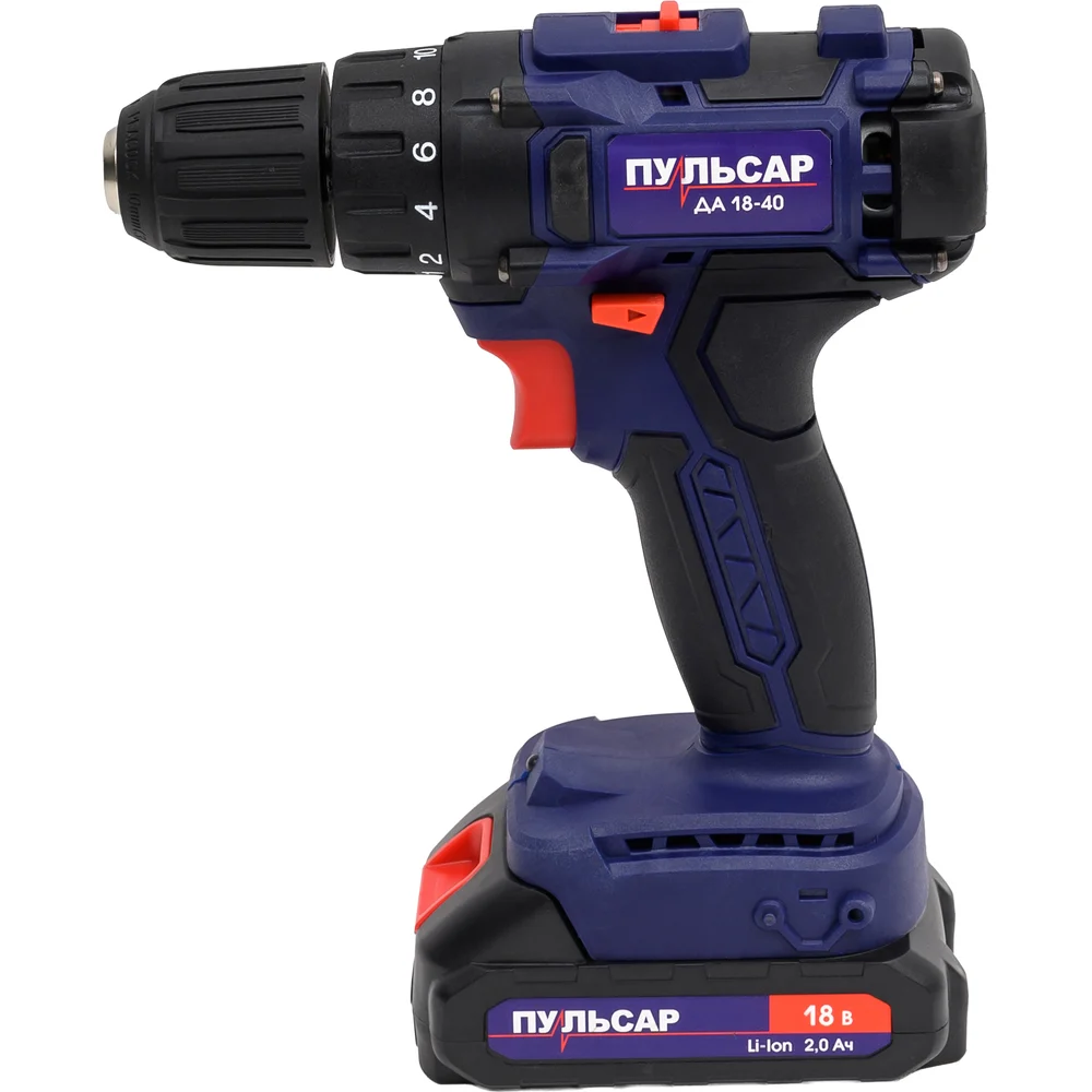 Купить Аккумуляторная безударная дрель ПУЛЬСАР ДА 18-40 18 В, 40 Hm, Li-on, 2,0 Ah, 2 аккумулятора, кейс 916-967 по лучшей цене с доставкой - интернет магазин №1 в России