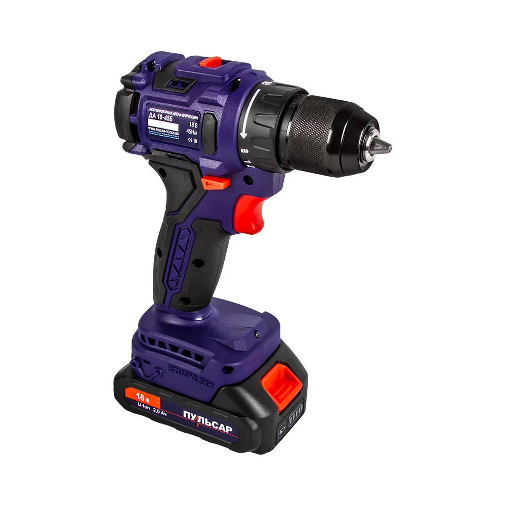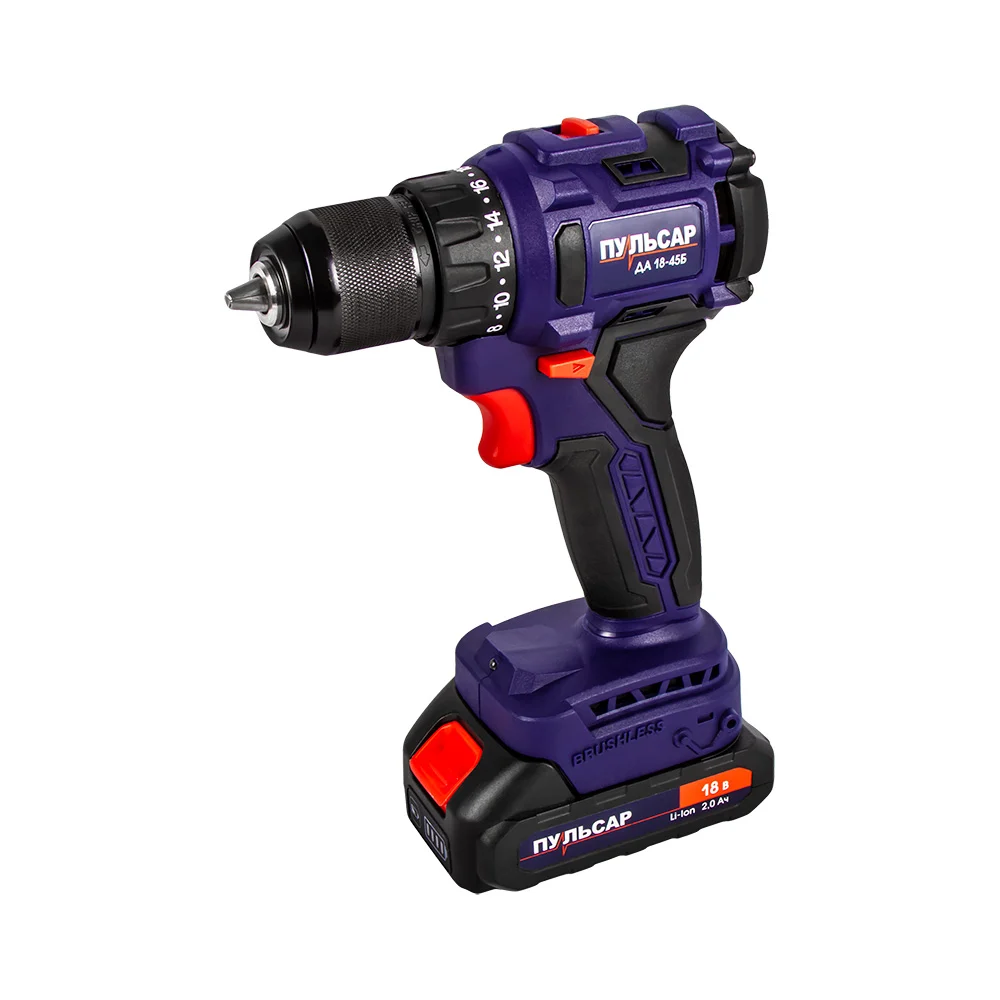 Купить Аккумуляторная безударная дрель ПУЛЬСАР ДА 18-45Б 18 В, 45 Hm, Li-on, BL-мотор, 2,0 Ah, 2 аккумулятора, кейс 916-974 по лучшей цене с доставкой - интернет магазин №1 в России