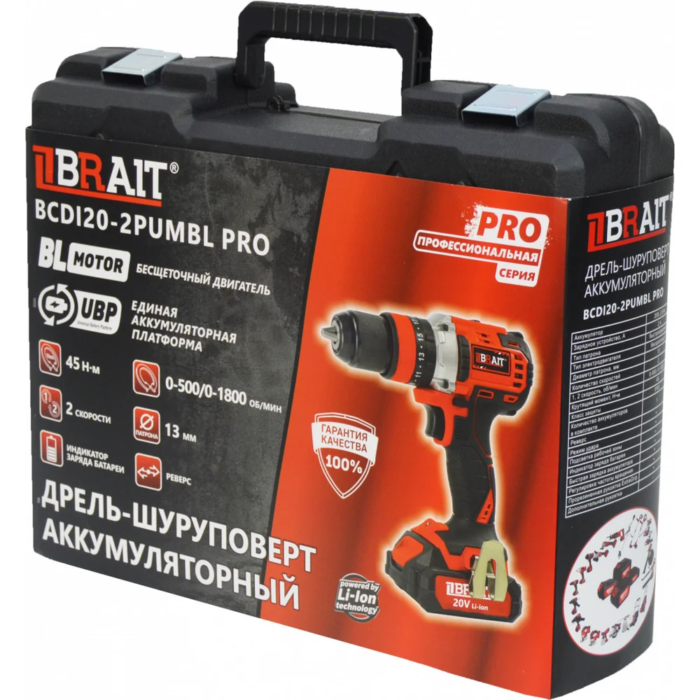 Купить Аккумуляторная дрель BRAIT BCDI20-2PUMBL PRO 21.01.204.101 по лучшей цене с доставкой - интернет магазин №1 в России