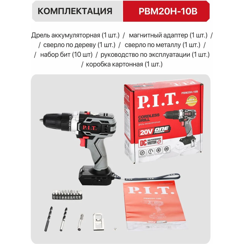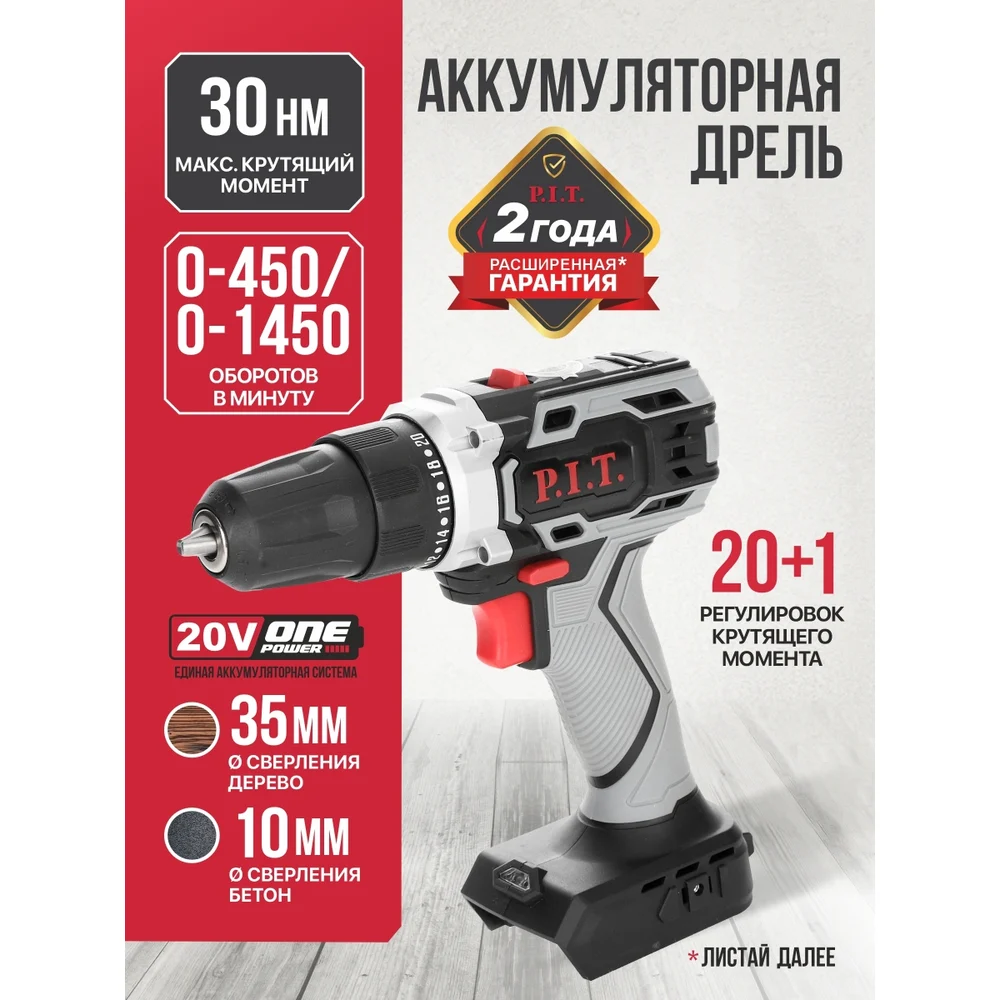 Купить Аккумуляторная дрель P.I.T. SOLO 20 В, 30 Нм, патрон 10 мм, 2 ск., коробка PBM20H-10B по лучшей цене с доставкой - интернет магазин №1 в России
