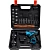 Комплектация Дрель-шуруповерт; Сетевой адаптер; 2 аккумулятора; Биты; Сверла; Гибкий удлинитель; Инструкция по эксплуатации; Кейс