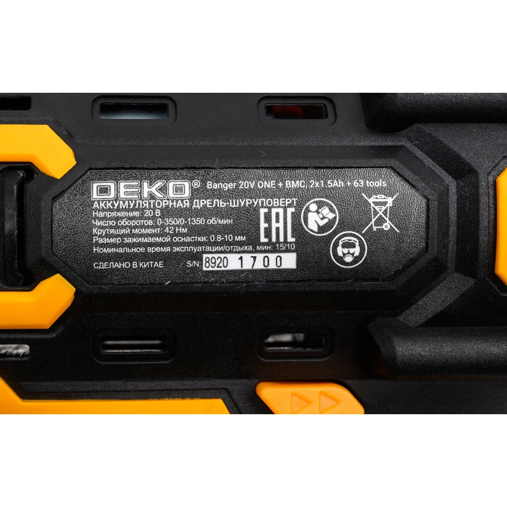 Купить Аккумуляторная дрель-шуруповерт Banger 20V ONE + в кейсе + набор 63 инструмента для дома, 20В, 2x1.5Ач DEKO 083-1043 по лучшей цене с доставкой - интернет магазин №1 в России