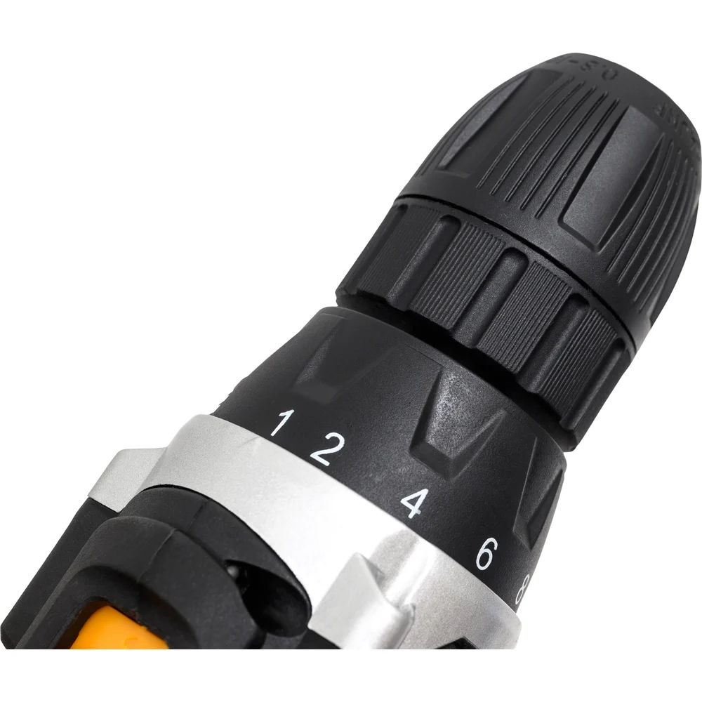 Комплектация 1 шт дрель-шуруповерт; 2 шт АКБ; 1 шт зарядное ус-во; 6 шт биты; 6 шт сверла; 1 шт магнитный держатель; 50 шт набор крепежа; 1 шт руководство по эксплуатации; 1 шт кейс